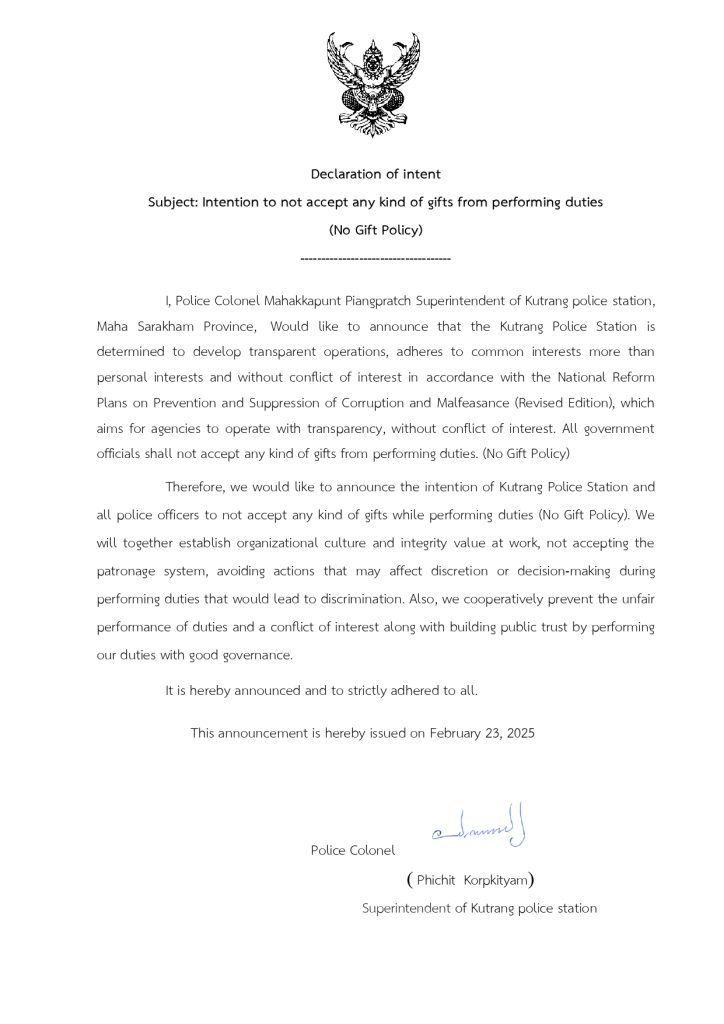 วันที่ 14 มีนาคม 2568 เวลา 15.00 น. พ.ต.อ.มหรรฆพันธุ์ เพียงปราชญ์ ผกก.สภ.กุดรัง คณะกรรมการที่มาจากข้