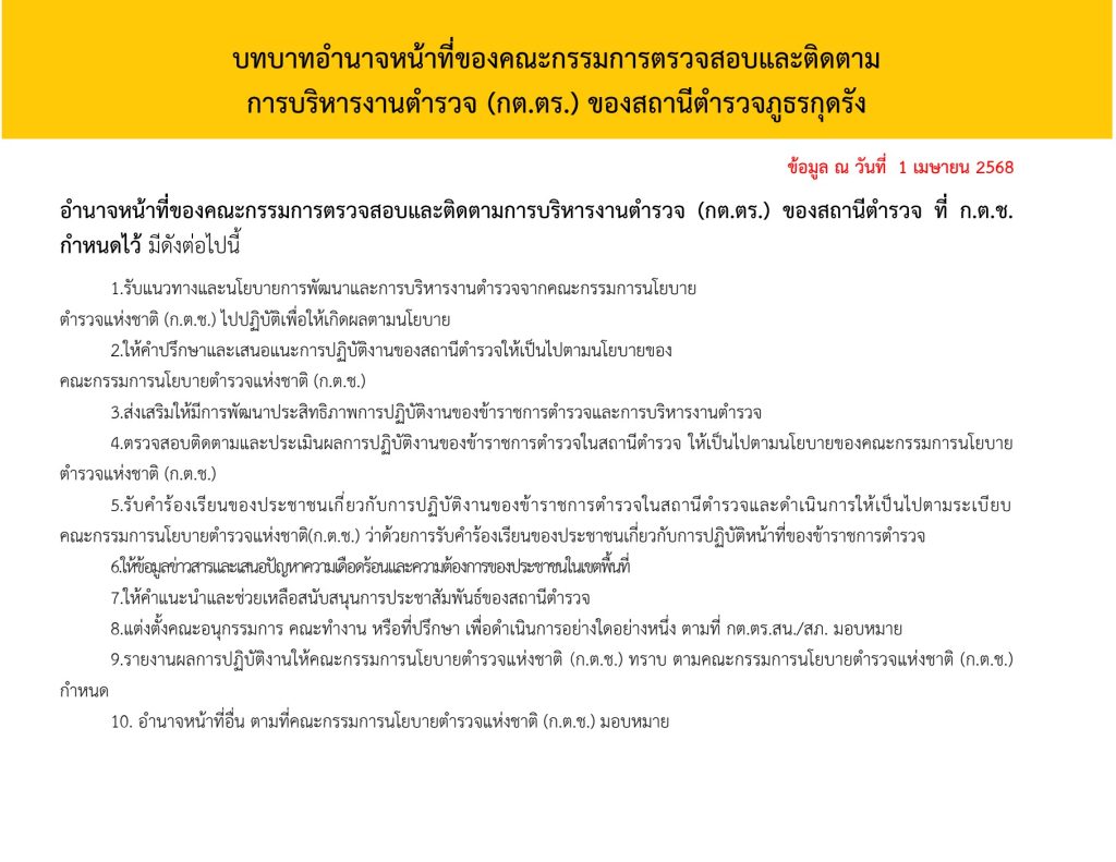 ผลการดำเนินงานของคณะกรรมการ กต.ตร.สภ.กุดรัง ตั้งแต่เดือน ตุลาคม 2567 – มีนาคม 2568